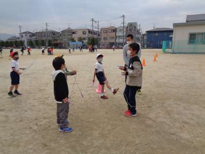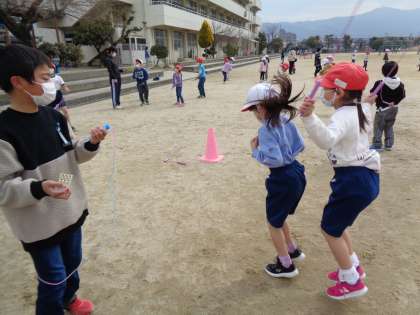 跳び方が分からないと、体育委員さんが丁寧に教えてくれます。