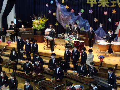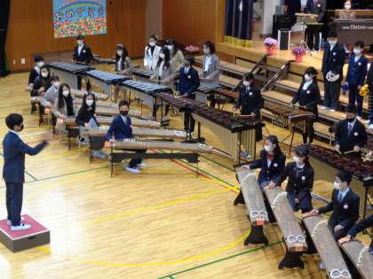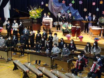 2曲目は、back numberの『水平線』です。子どもたちが自ら、卒業演奏に選んだ曲です。みんなの気持ちがひとつに溶けあって、美しいハーモニーが奏でられました。