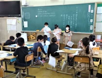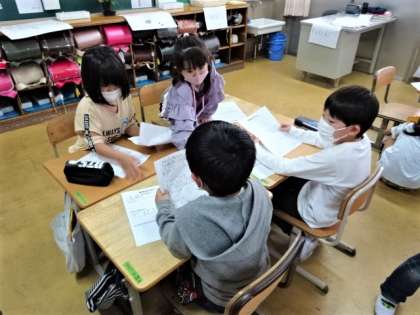 2年生は明日の学校たんけんの準備で、1年生に校内を案内できるようにグループで紹介の言葉を練習したり、実際にその場所に行ってみたりしました。