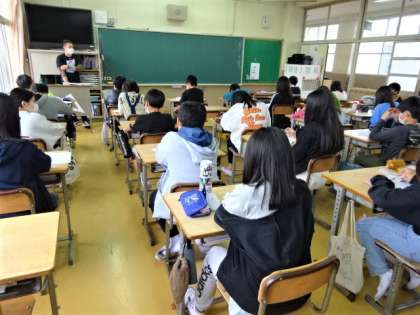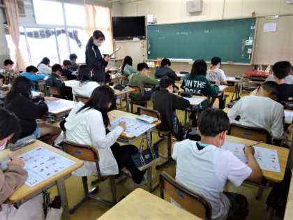 完成した宿泊学習のしおりを使って、行程を確認したり、外国語科の単元テストをしているクラスもありました。