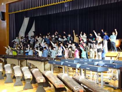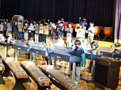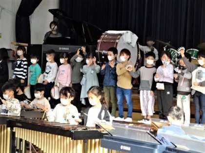 1年生もいろいろな楽器を使って合奏に挑戦しています。合唱も振り付けをつけながらみんなで元気に歌いました。