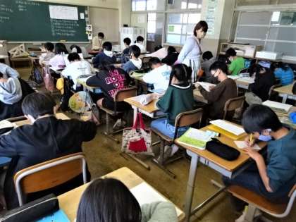 4年生は算数で「整理のしかた」の学習を始めました。校内でけがをした場所とけがの種類をまとめた表を見て、どこにどんなポスターを作って貼ればいいか考えました。