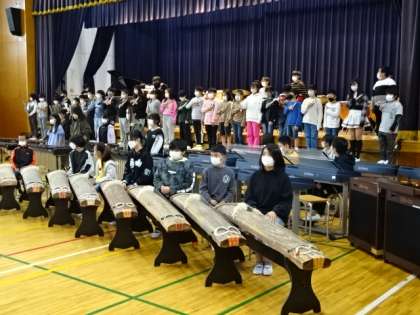 5年生は1曲目の「大きな古時計」で、トーンチャイムを奏でる場面があります。一人一音担当して、とても素敵なハーモニーを聞かせてくれました。