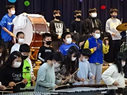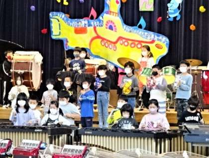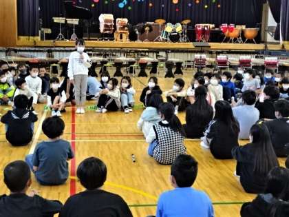 4時間目には、3年生と5年生が互いの学年の演奏を聴き合いました。