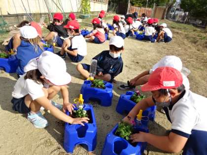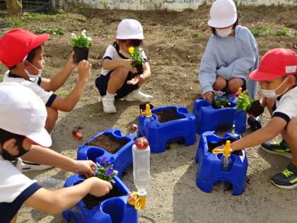 今日は1時間目にビオラのお花とチューリップの球根を植えました。