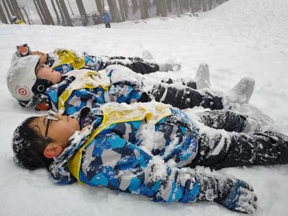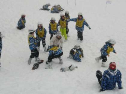 先生も雪合戦のターゲットになっていますが、負けていません。