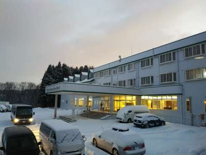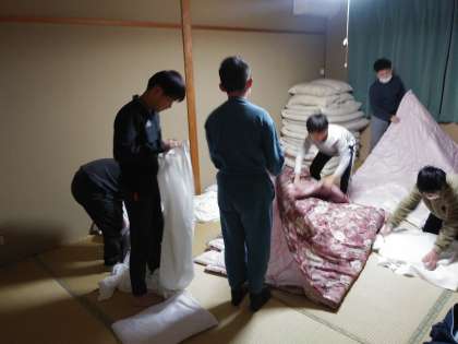おはようございます。昨夜降った新雪が積もっています。夜が明けてきました。子どもたちは布団やシーツをみんなでたたみ、荷物整理をしています。