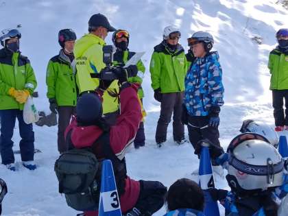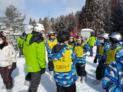 各班でお世話になったインストラクターの先生にお礼を言いました。そして、スキー学習の閉校式では、代表のお友だちに修了証が授与されました。