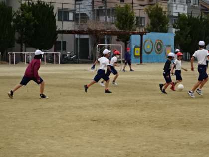 写真はサッカークラブの試合と球技クラブの話し合いの様子です。