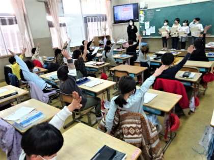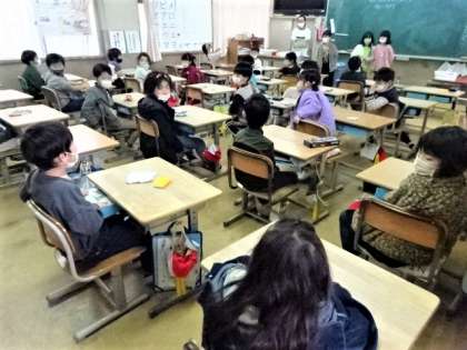1年生は算数の学習のときに、学習係さんが前に出て、前時の学習のめあてと今日の学習のめあてを確認していました。