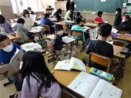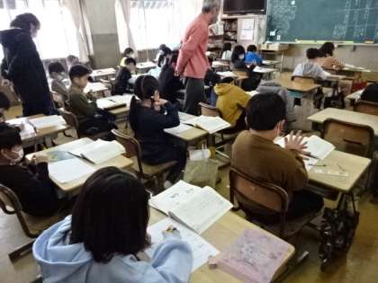 道徳で自分が書いた考えを、お友だちに伝えています。