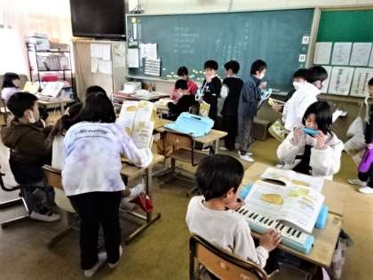 音楽では「こぐまの二月」の歌を鍵盤ハーモニカなどの楽器で演奏しています。