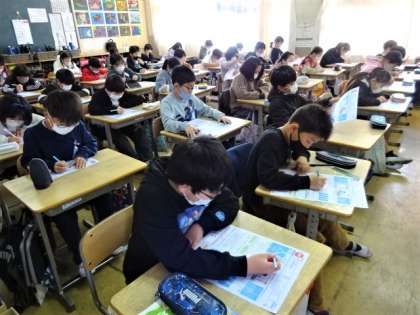 4年生は国語のまとめテストをした後、先生から解説をしてもらっています。