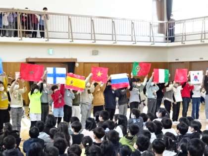 世界の国旗が次々に上がっていった時には、その国の言葉で6年生に「ありがとう!」と伝えていました。