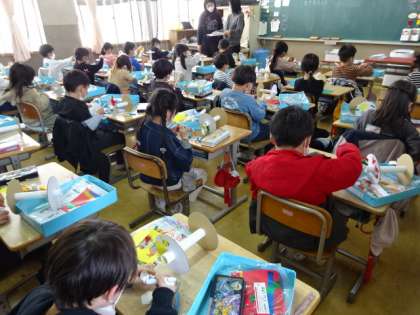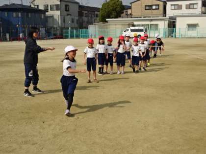 1年生は運動場の体育で、伸び伸びと活動していました。