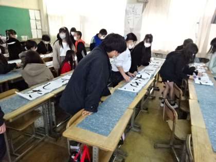 5年生は6年生のメッセージを毛筆で書いて台紙に貼り、6年生との合同練習の時に披露するのかもしれません。