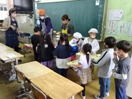 教室での配膳は、担任の先生以外の先生もお手伝いに来てもらいました。