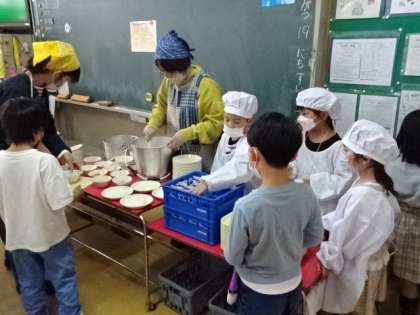 実は2〜6年生の子どもたちもとても楽しみにしていました。2年生は去年の「はじめての給食」を思い出したようです。