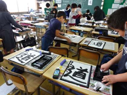 5年生は習字で「道」という字を書きました。5年生の最初の習字としては難しい字でしたが、一生懸命書きました。