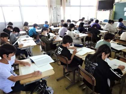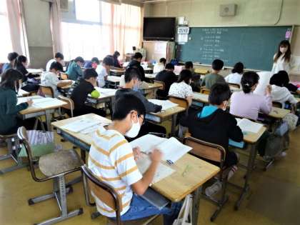5年生は大阪府小学生すくすくウオッチ(学力テスト)に挑戦しました。問題は国語・算数・理科の3教科とわくわく問題(教科横断型問題)です。最後まであきらめずに解き切ることを目標に頑張りました。児童質問紙調査のアンケートは、今年度からそれぞれのタブレットパソコンで回答しました。