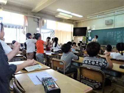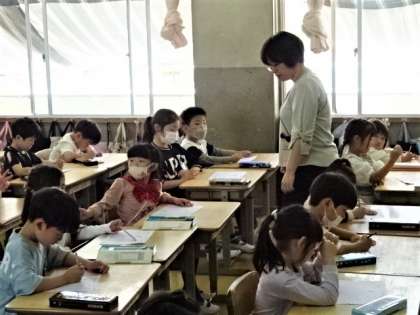 1年生は国語の学習で「て」のひらがなを習いました。「手」の字の書き方の練習や「て」のつく言葉の発表など、1年生の子どもたちはとてもがんばっていました。