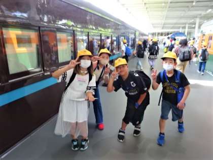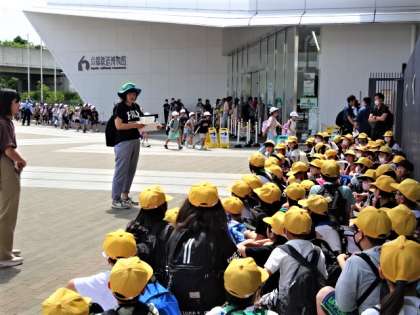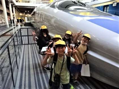 京都鉄道博物館に到着しました。ここからはグループで見学します。時計係の子もいて、集合時間に間に合うように気をつけました。