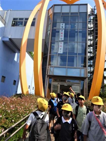 帰りはごみ処理場の職員の皆さまが窓から見送ってくれました。
