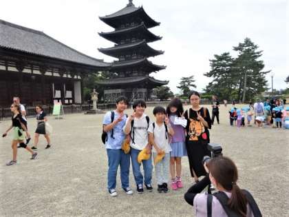 五重塔の前では班ごとにカメラマンさんが記念写真を撮ってくれました。