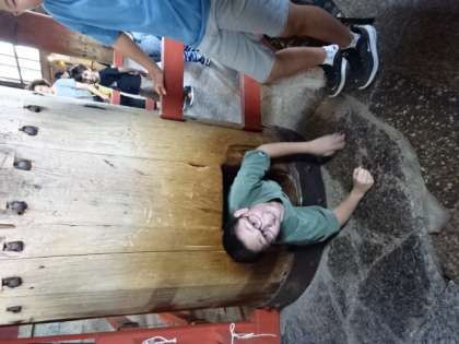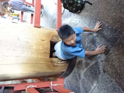 大仏殿の中の柱の一つには、大仏の鼻の穴と同じ大きさの穴が開いていて、そこをくぐり抜けるのが人気スポットになっています。