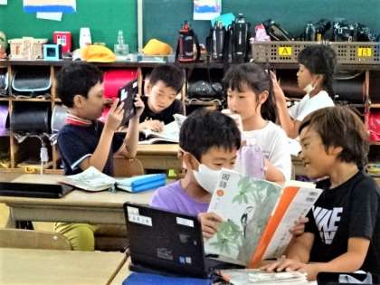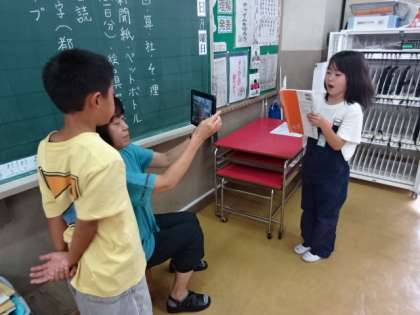 自分の音読の様子を映像で振り返って、上手に読めるようにします。