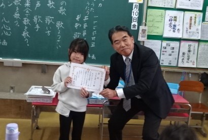 11月10日(金)、今日は2年生のお友だちが読書ノートで150冊を見事達成して、表彰しました。1冊1冊読んだ本の題名とミニ感想を読書ノートに記録して、150冊を達成するのはとても大変だと思います。よくがんばりました。