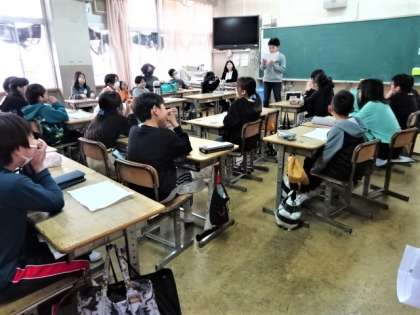 4年生は、総合的な学習の時間に「将来なりたい職業」について調べて、自分の考えを作文にまとめました。今日は練習で、みんなの前で発表しています。みんなの前で話すことはとてもどきどきしますが、大事な学習です。