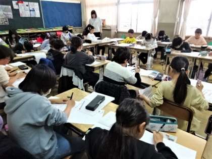 国語では自分で作った詩を清書しています。毛筆で書くと、味のある作品になります。