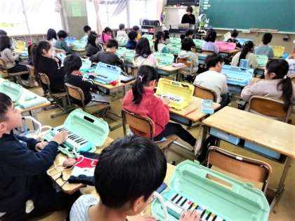 音楽では鍵盤ハーモニカの練習をしています。今まで習った練習曲を、先生が題名を言っただけで演奏することができるので、びっくりしました。