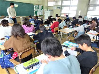 5年生は算数で「正多角形と円」の応用問題に挑戦しています。今までに習ったことを活用して考えています。