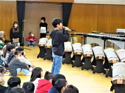 はじめに児童会代表のお友だちが開会の言葉を述べました。とても堂々と6年生への感謝の気持ちにあふれた挨拶でした。
