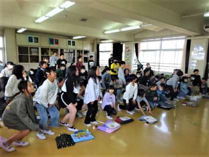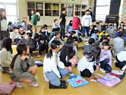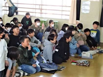 4年生の音楽で鑑賞の学習をしています。みんなが聴いている曲はビゼー作曲の『アルルの女』より「ファランドール」という曲です。この曲は「王の行進」と「馬のダンス」の2つの旋律から成り立っていて、その旋律が反復して交互に出てきます。