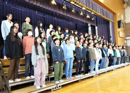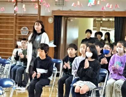 3月13日(水)、今日は2,3時間目に卒業式に向けての5,6年生の合同練習がありました。5年生は卒業式当日には参加しませんが、6年生の姿を卒業式の通し練習の中でしっかりと目に焼き付けていました。