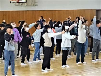 苦しいことにも負けないで、これから前に進んでいく6年生に勇気と希望のメッセージを送る歌とパフォーマンスでした。