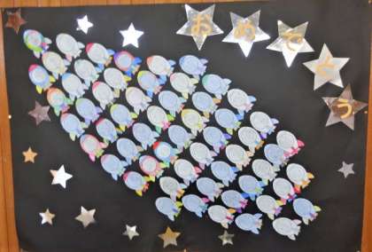 6年生が体育館から教室に戻ったあと、5年生は体育館に残って、6年生の入場の時に放送で流す『威風堂々』の曲の演奏録音をしました。