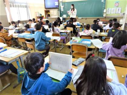 1年生は毎日、いろいろな文章に触れて、みんなで声に出して読んでいます。