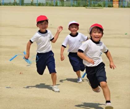 運動場ではしっぽとり鬼をしています。何度もやっているので取るのも逃げるのも上手になってきました。