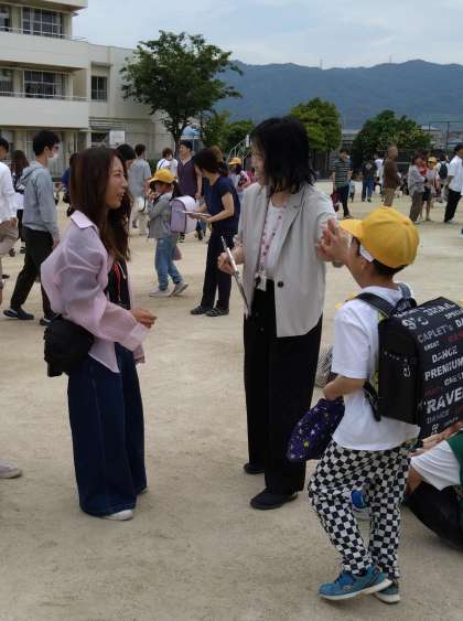 「お母さんです。」とか、「お父さんです。」と担任の先生にきちんと伝えられる人が多かったので安心しました。