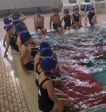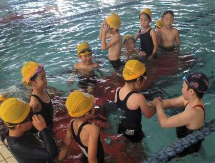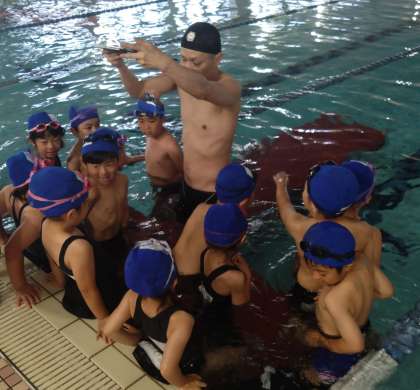 プールサイドには、班の番号を持ったインストラクターさんが待ってくれています。