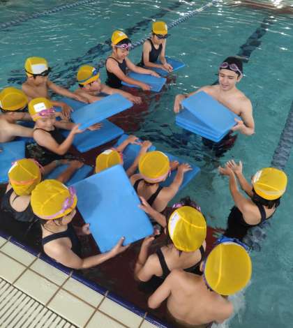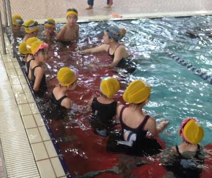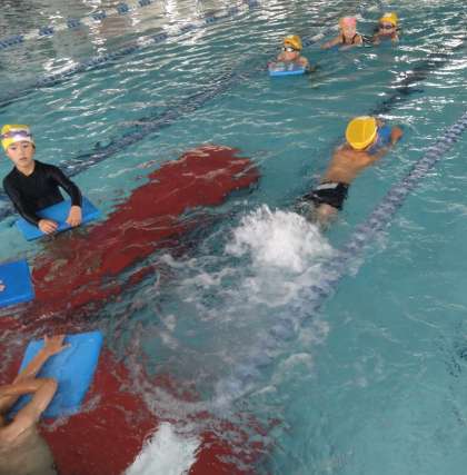 2年生は、さっそくビート板を持って、バタ足の練習をしている班もありました。