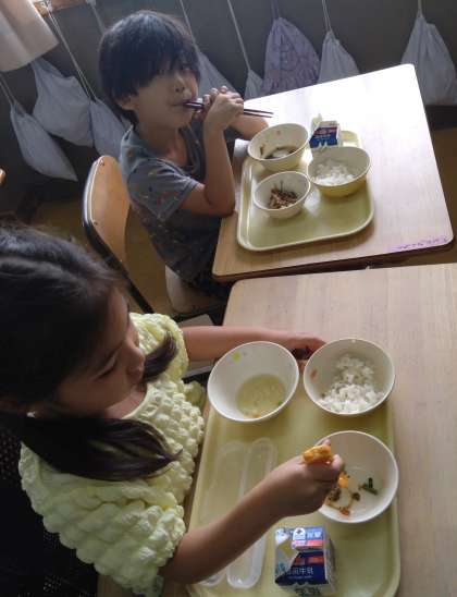 もうすっかり学校にも慣れて、給食にも慣れて、自分のペースでしっかり食べていました。
