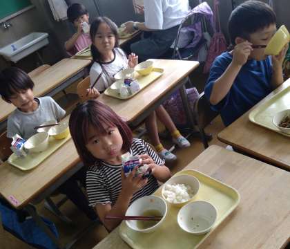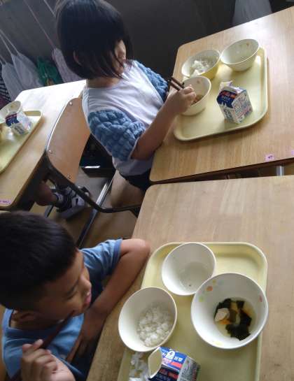久しぶりに1年生の給食のようすをのぞいてみました。
