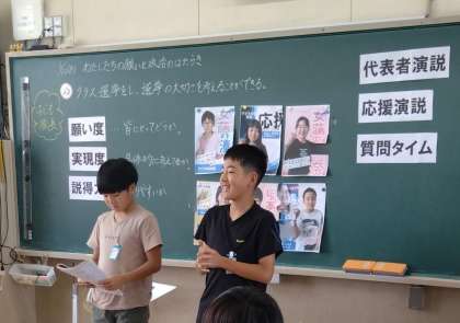 6年生の社会科で行われていた子ども校長選挙。