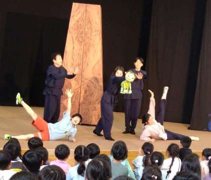 演者さんは、たったの5人でしたが、5人でいろいろな役をしたり、舞台の場面を転換したり、その動きにも子どもたちは驚き、感動していたようでした。
