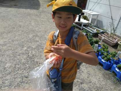 嬉しそうです。「そのトマトどうするの?」と聞いてみました。